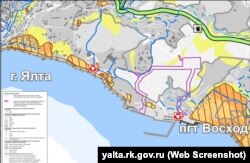 Как указано в документации, утвержденной Министерством строительства и архитектуры Крыма, опреснительную установку планируют построить на границах поселка южнобережного поселка Отрадное и Ялты.
